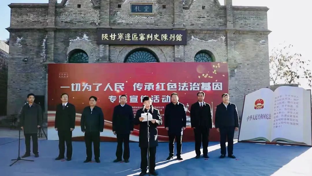 11月30日下午,由司法部普法與依法治理局指導(dǎo),中共陜西省委依法治省辦、省委普法辦、省司法廳主辦,延安市中級人民法院、延安市司法局承辦的“一切為了人民—傳承紅色法治基因”專題宣傳活動在陜甘寧邊區(qū)高等法院舊址舉辦。
