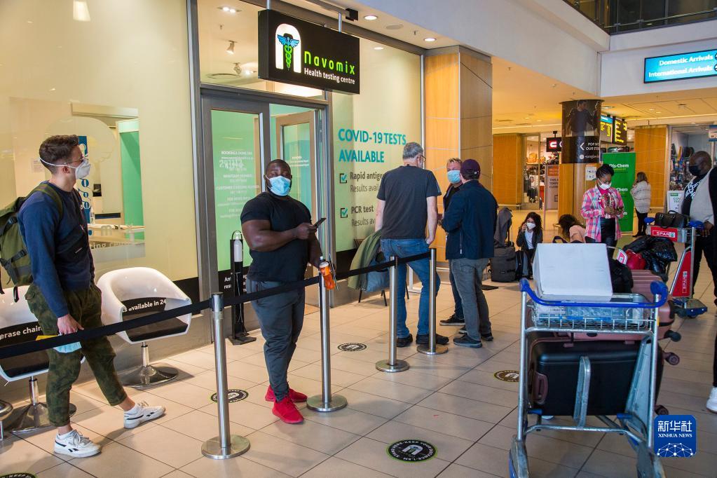 旅客在南非開普敦國際機(jī)場等待接受新冠病毒檢測(2021年11月29日攝)。為防范新冠變異病毒奧密克戎毒株傳播,多國對(duì)南非等非洲國家的航班和旅客實(shí)施入境限制,并升級(jí)防控措施。新華社發(fā)(弗克攝)