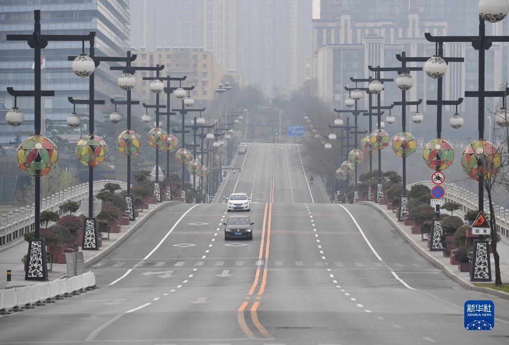 少量車(chē)輛行駛在西安市曲江新區(qū)曲江池東路(12月23日攝)。新華社記者 邵瑞 攝