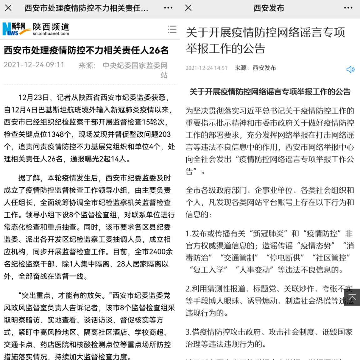 對(duì)在疫情防控工作中不擔(dān)當(dāng)、不作為,推諉扯皮、消極應(yīng)付等形式主義官僚主義問(wèn)題,西安市嚴(yán)肅查處、精準(zhǔn)問(wèn)責(zé)、及時(shí)曝光,進(jìn)一步嚴(yán)明疫情防控紀(jì)律,壓緊壓實(shí)各方責(zé)任。目前,西安市已經(jīng)組織紀(jì)檢監(jiān)察干部開(kāi)展監(jiān)督檢查15輪次,檢查關(guān)鍵點(diǎn)位1348個(gè),現(xiàn)場(chǎng)發(fā)現(xiàn)并督促整改問(wèn)題203個(gè),追責(zé)問(wèn)責(zé)疫情防控不力基層黨組織和單位4個(gè),處理相關(guān)責(zé)任人26名,通報(bào)曝光2起14人。
