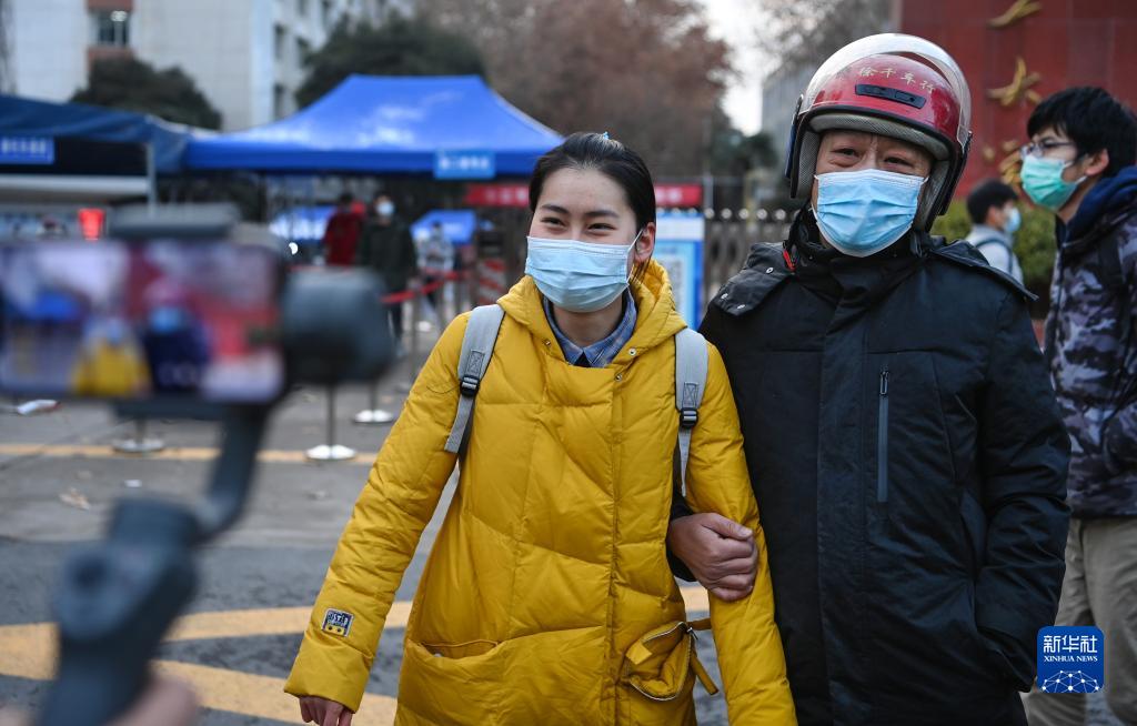 12月26日,一名男子迎接走出研究生招生考試考場(chǎng)的女兒。新華社記者 陶明 攝