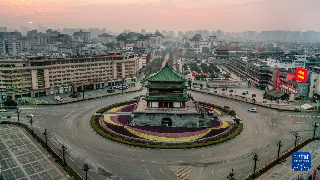 12月27日拍攝的西安市鐘鼓樓廣場(無人機(jī)照片)。新華社記者 陶明 攝