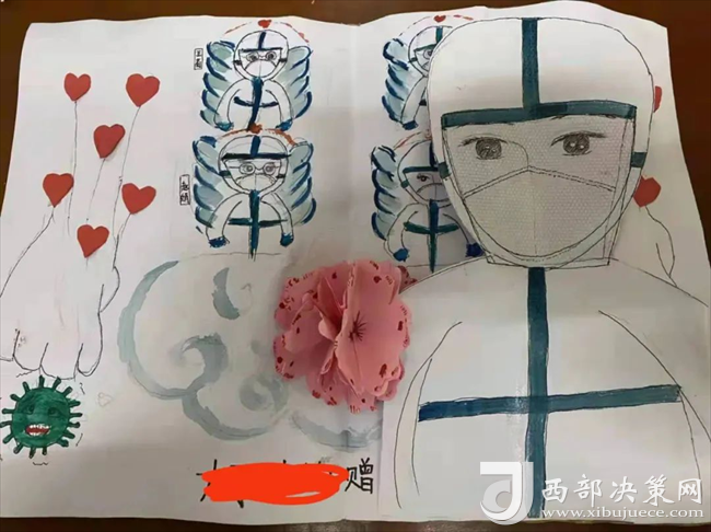 12月13日23時,第一例患者收住隔離病區(qū)?;純喝朐簳r全身感染,癥狀重,精神狀況差,哭鬧拒絕吃藥。為了安撫孩子焦慮情緒,隔離病區(qū)醫(yī)護(hù)人員輪流進(jìn)入病房,陪患兒玩耍,科室安排專人,購買孩子需要的跳繩、皮筋、折紙、水果等生活用品,功夫不負(fù)有心人,經(jīng)過醫(yī)護(hù)人員耐心、細(xì)心地陪伴,孩子的情緒逐漸平靜下來,并積極配合治療,患兒最終診斷為“急性化膿性扁桃體炎、流行性感冒、急性支氣管炎”。三天后,體溫恢復(fù)正常,精神狀況明顯好轉(zhuǎn)。12月22日,患兒痊愈出院,為了表達(dá)感激之情,她動手為隔離病區(qū)工作人員送上自己精心做的一幅手工畫,向科室醫(yī)護(hù)人員敬獻(xiàn)一面錦旗。