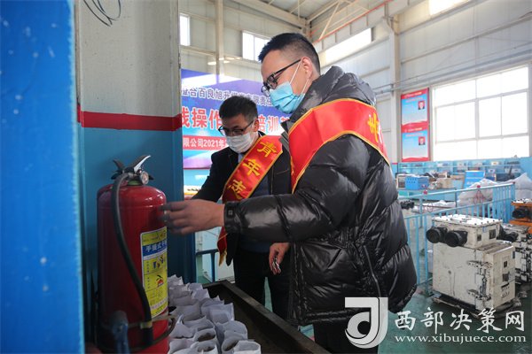 該公司青年黨員正在現(xiàn)場檢查消防設(shè)施