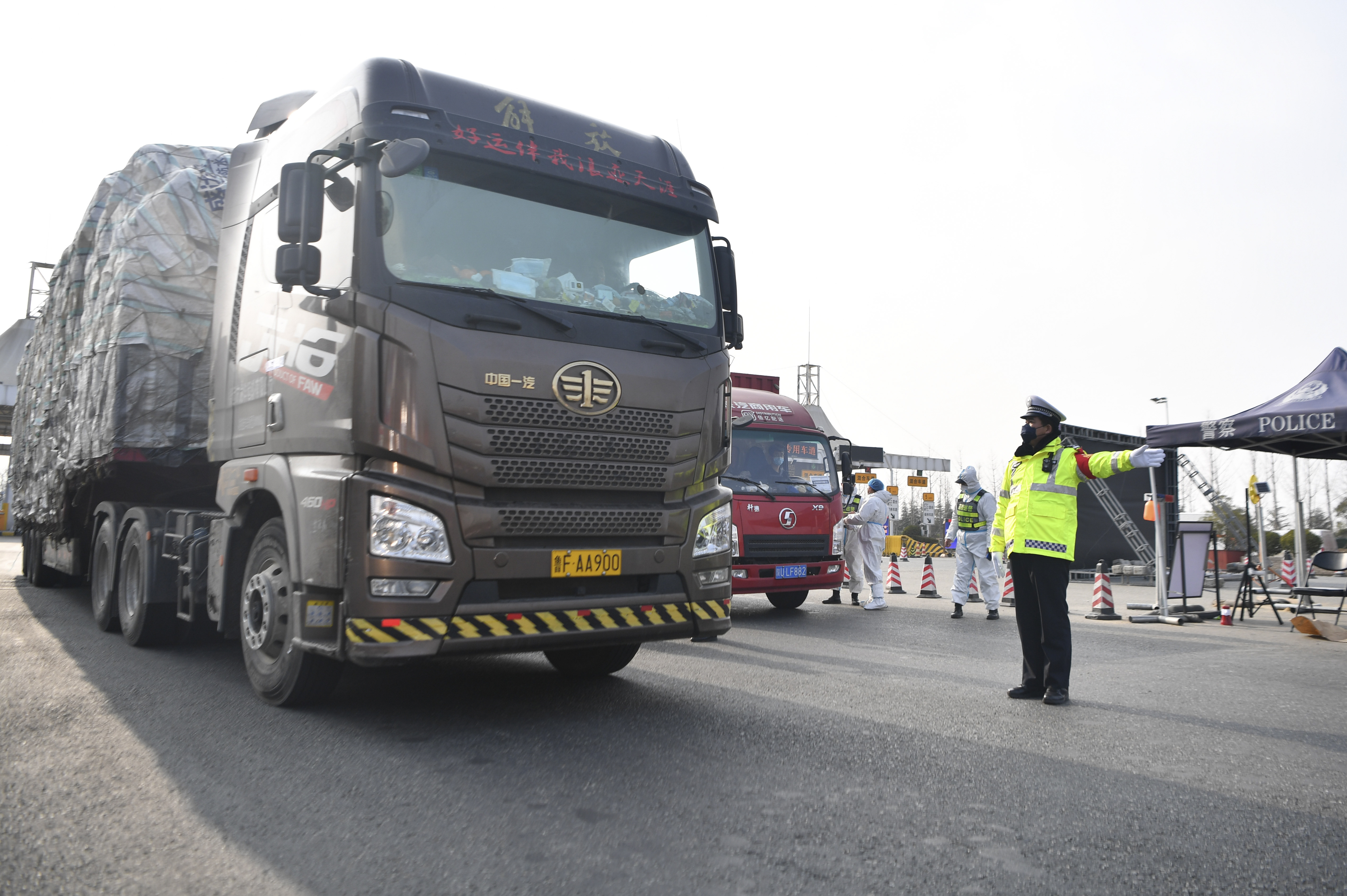1月10日,西安市公安局浐灞生態(tài)區(qū)分局民警在西安市繞城高速新筑收費(fèi)站查驗車輛通行證件。新華社記者 張博文 攝