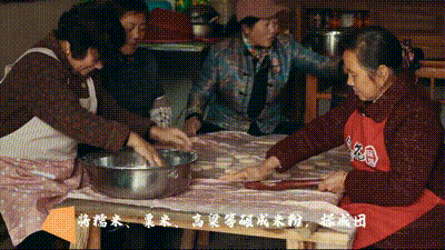 將糯米、粟米、高粱等碾成米粉,揉成團