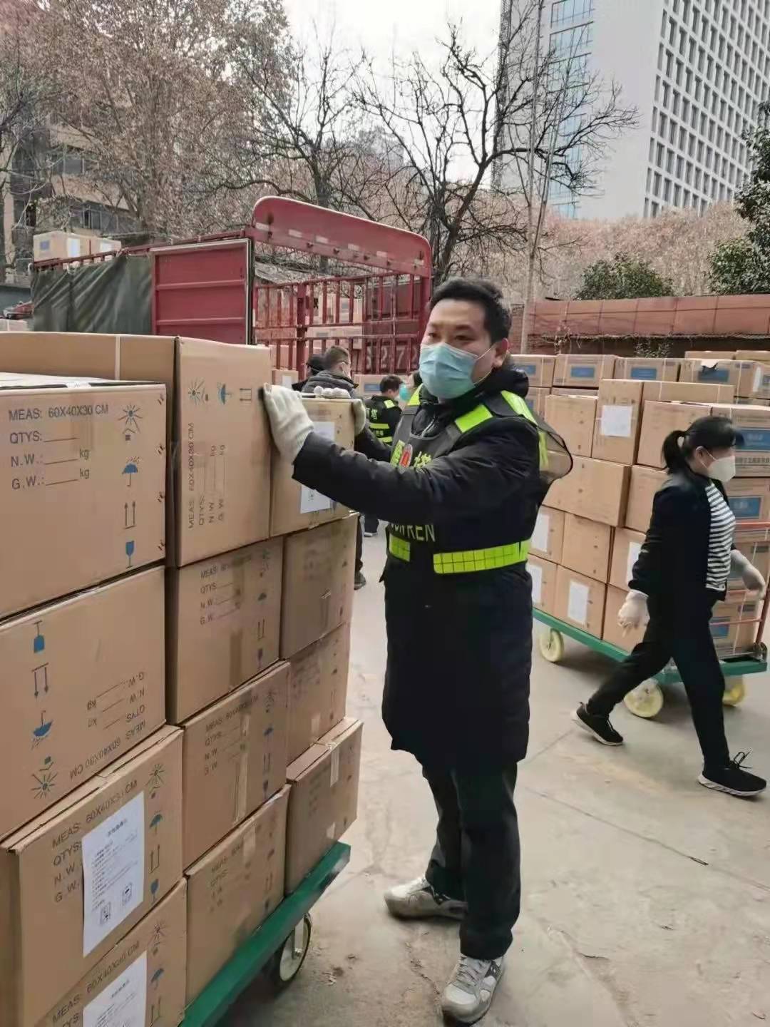 在雁塔區(qū)防疫物資保障中心,耿毅和18名志愿突擊隊(duì)隊(duì)員共同負(fù)責(zé)搬運(yùn)物資工作。搬運(yùn)是個(gè)力氣活,每天從四面八方匯集而來的物資更是源源不斷。只要有物資運(yùn)來,他們便立即進(jìn)入戰(zhàn)斗狀態(tài),爬上一輛輛大卡車,將物資一箱箱從車上卸下來,分門別類整理好,再搬到指定庫(kù)房或區(qū)域。由于各類物資抵達(dá)的時(shí)間不固定,耿毅他們幾乎是全天候待命。天氣雖然寒冷,但一天工作下來,志愿者們卻忙得直冒汗。