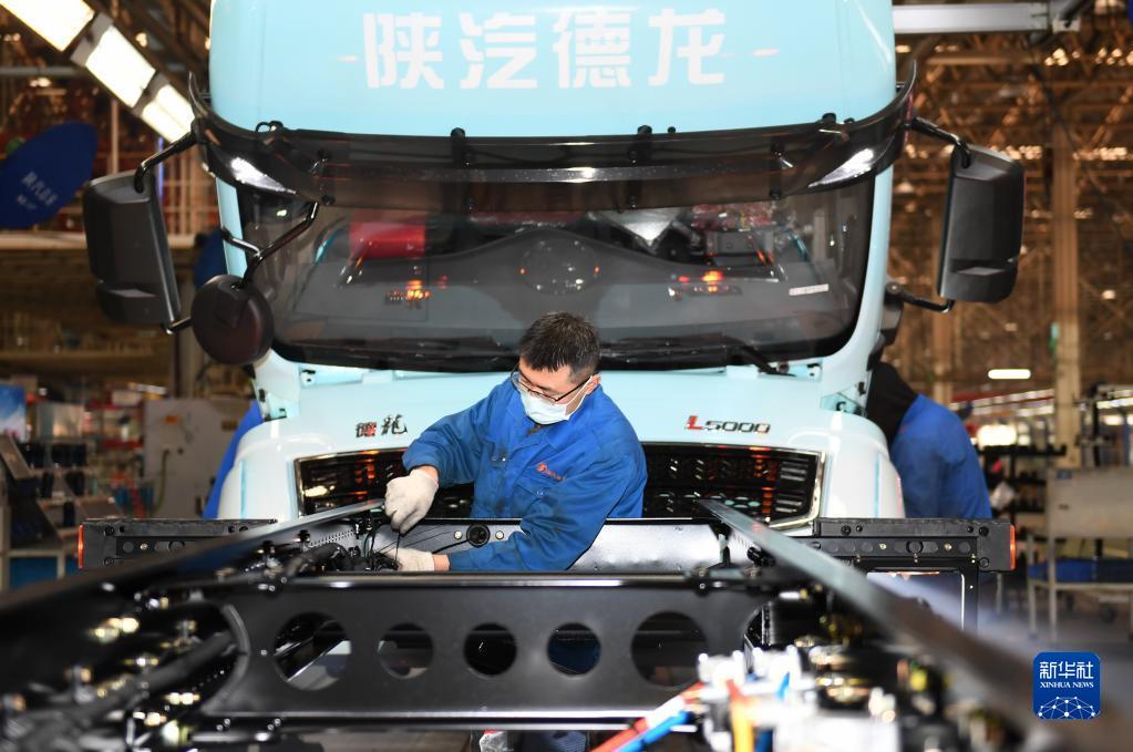 1月20日,工人在陜西汽車控股集團(tuán)有限公司總裝車間進(jìn)行重型卡車裝配。新華社記者 李一博 攝