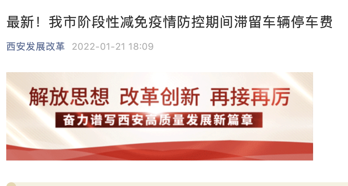 3.2021年12月23日零時(shí)前以及機(jī)動(dòng)車所在區(qū)縣疫情防控指揮部明確解除本小區(qū)、停車場(chǎng)封閉之日后,停車費(fèi)按照停車場(chǎng)原定臨時(shí)停放收費(fèi)標(biāo)準(zhǔn)收取。因車主處于隔離狀態(tài)無法取車,減免時(shí)間需延長的,以車主提供解除隔離相關(guān)證明材料為準(zhǔn)。