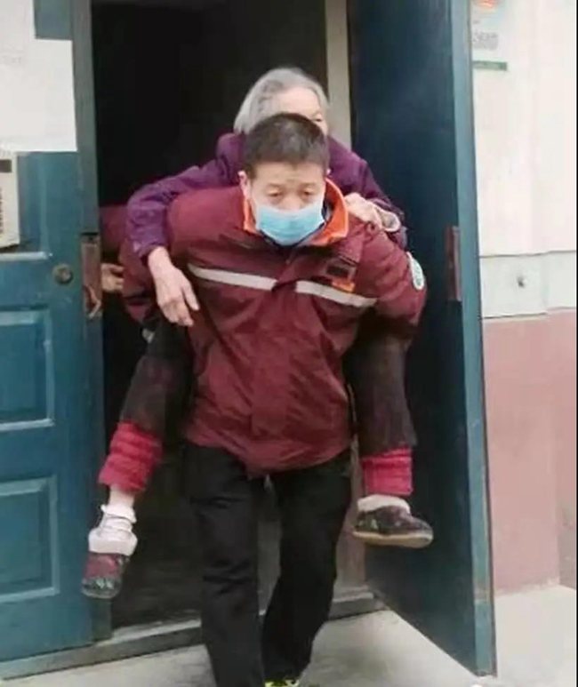 市內(nèi)某小區(qū)一名獨居老人急需就醫(yī),120急救車到達(dá)后發(fā)現(xiàn)其居住單元老舊,擔(dān)架根本無法使用,情急之下,司機楊明背起老人快速將其轉(zhuǎn)入救護(hù)車。