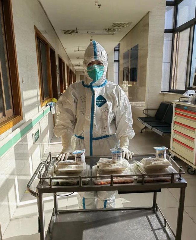 每次給病人送飯,田甜還會“附贈”一張可愛的便簽紙。她把“吃好、喝好”留給年齡大的趙大爺,“既來之,則安之”送給焦慮的劉大媽,“拒絕emo”給同齡的小張,這是田甜想到的“最溫暖的創(chuàng)意”。