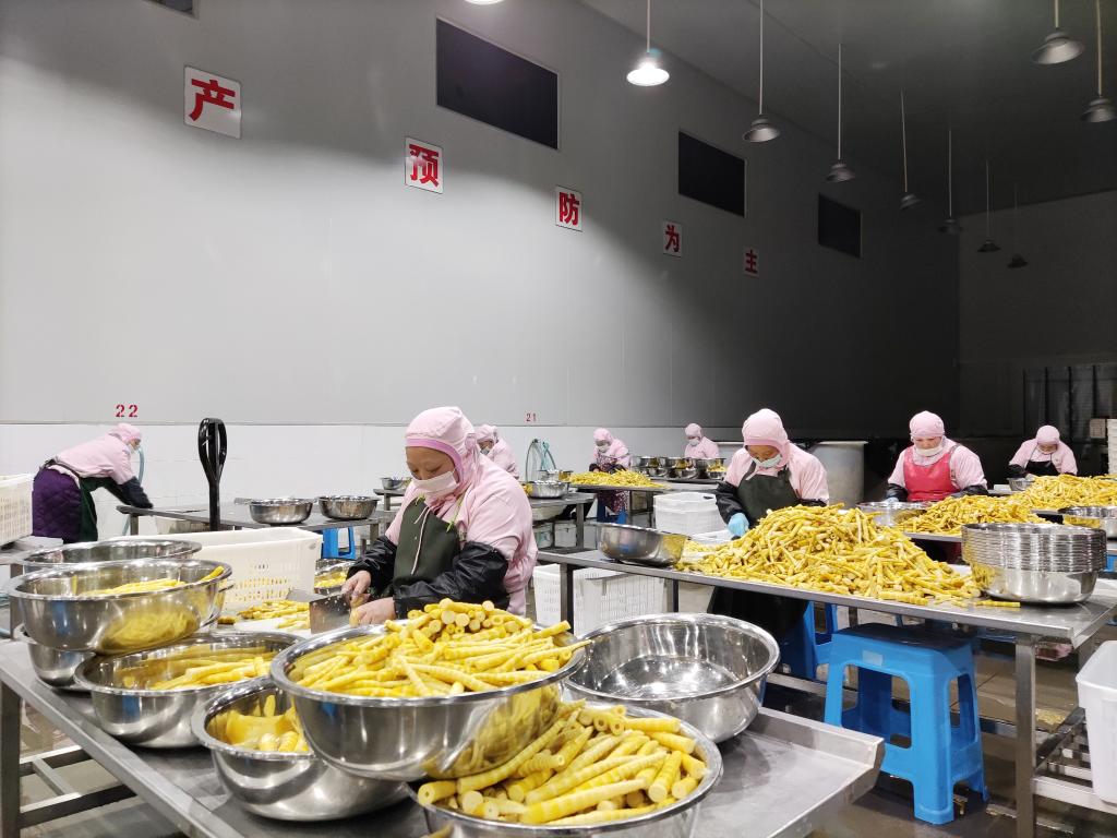在碗廠鎮(zhèn)農(nóng)特產(chǎn)品產(chǎn)業(yè)園,竹筍加工廠多條生產(chǎn)線有序運轉(zhuǎn)。