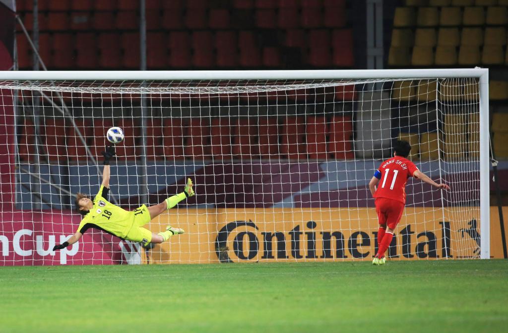 2月3日,中國(guó)隊(duì)球員王珊珊(右)在點(diǎn)球大戰(zhàn)中破門(mén)。新華社發(fā)(賈韋德·達(dá)爾攝)