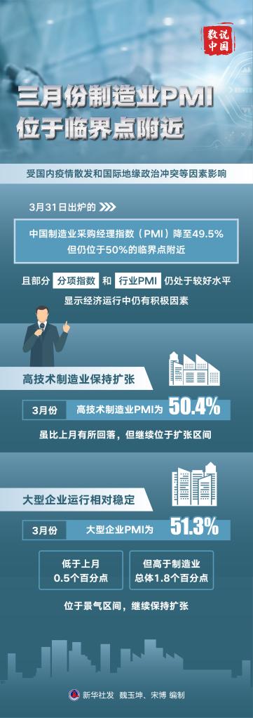 受國內疫情散發(fā)和國際地緣政治沖突等因素影響,31日出爐的中國制造業(yè)采購經理指數(PMI)降至49.5%,但仍位于50%的臨界點附近,且部分分項指數和行業(yè)PMI仍處于較好水平,顯示經濟運行中仍有積極因素。
