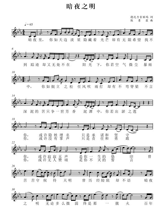 慶祝建黨百年獲獎歌曲作品選集——《暗夜之明-獻給保密人的歌》詞曲。