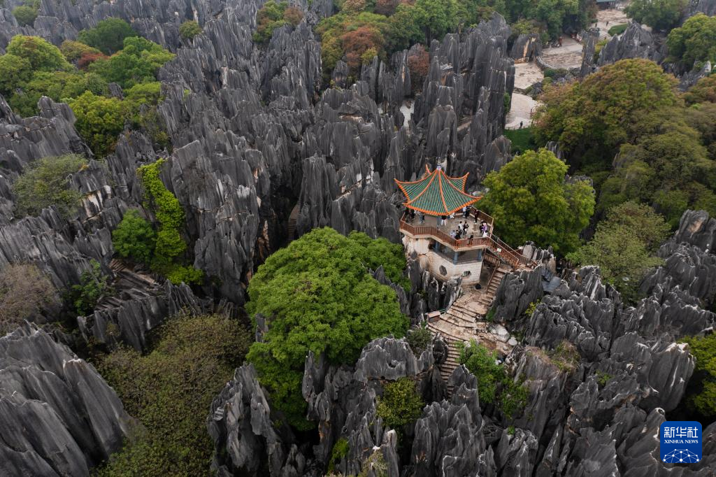 這是4月10日拍攝的大石林望峰亭(無人機照片)。新華社記者 王冠森 攝