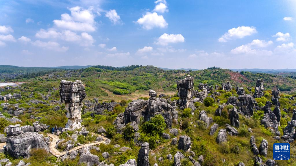 這是4月10日拍攝的石林景觀(無人機照片)。新華社記者 王冠森 攝