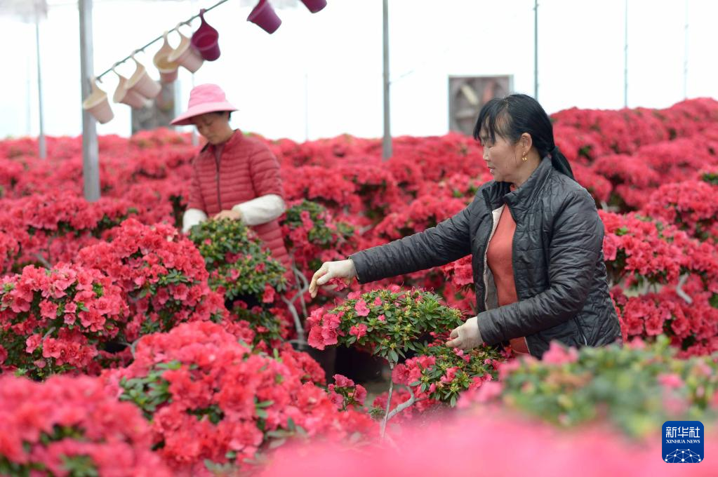 4月18日,村民在桐梓縣婁山關(guān)街道杉坪村黔北花海景區(qū)杜鵑花種植基地勞作。