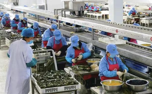 “粽子產(chǎn)業(yè)園投產(chǎn)不到幾天,就接到北京、上海、天津、內(nèi)蒙古等地客戶(hù)的300萬(wàn)只粽子訂單,其中30%來(lái)自網(wǎng)絡(luò)平臺(tái)。”張新文說(shuō)。