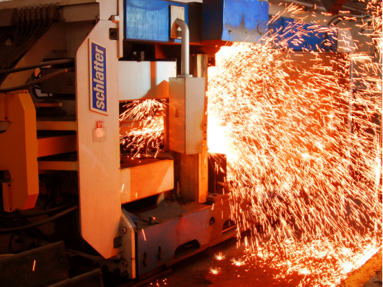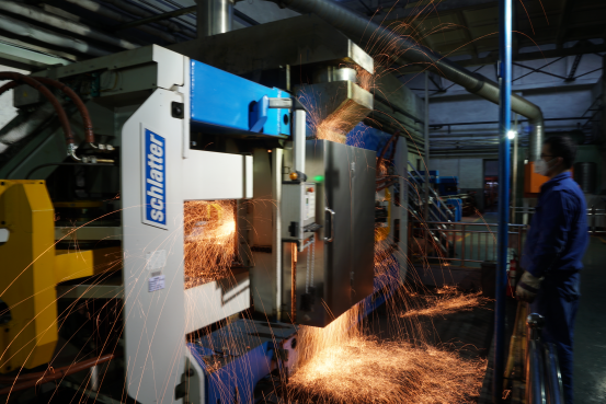 “90后”焊機(jī)操作手楊宇,左手快速擦去額頭上細(xì)密的汗珠,右手打開焊機(jī)艙門查看鋼軌焊接狀態(tài),只見兩根鋼軌的焊縫處“燒”的火紅,楊宇確認(rèn)無誤后,啟動傳送輥道,第3根鋼軌也要在這里進(jìn)行焊接,直到5根100米母材焊接成500米長鋼軌。