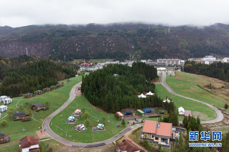 從空中航拍重慶高速冷水服務(wù)區(qū)生態(tài)旅游自駕營(yíng)地。新華網(wǎng) 耿駿宇 攝