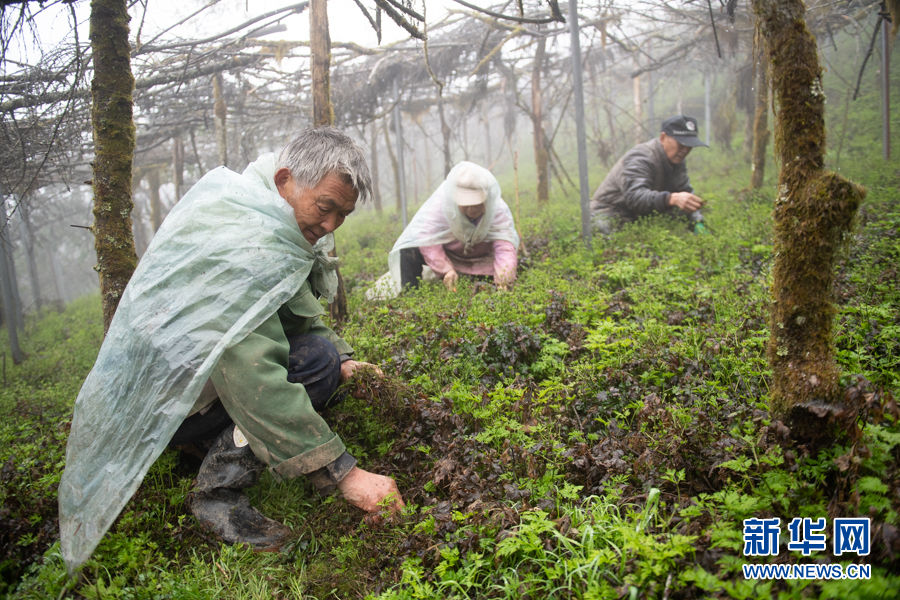 圖為村民在石柱縣冷水鎮(zhèn)玉龍村黃連種植基地內(nèi)對(duì)黃連進(jìn)行管護(hù)。新華網(wǎng) 耿駿宇 攝