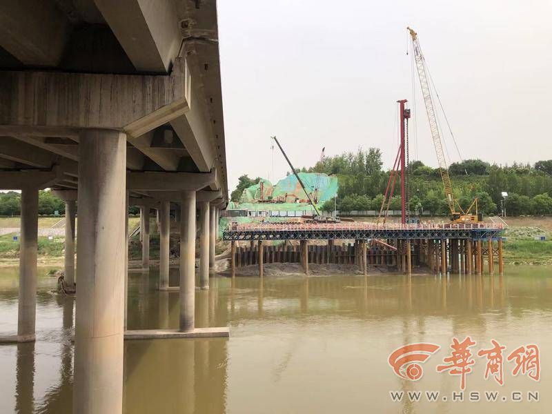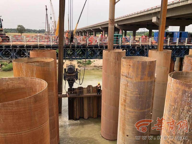 大橋上跨渭河,濕地保護(hù)、水土保持及文明施工要求高。華商報(bào)記者在現(xiàn)場(chǎng)看到,3號(hào)墩施工現(xiàn)場(chǎng),深基坑需開挖25米深。“我們用的是五層鋼支撐圍檁,3號(hào)墩是開挖最深的。”京昆改擴(kuò)建六標(biāo)段項(xiàng)目書記馬俊說,在河道內(nèi)的1、2號(hào)墩,樁基、承臺(tái)施工難度大、工序多,3號(hào)到7號(hào)橋墩承臺(tái)在地面以下7-17米,承臺(tái)施工深基坑開挖支護(hù)風(fēng)險(xiǎn)高、難度大。