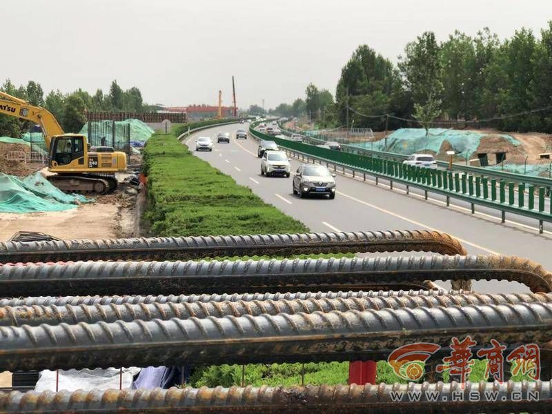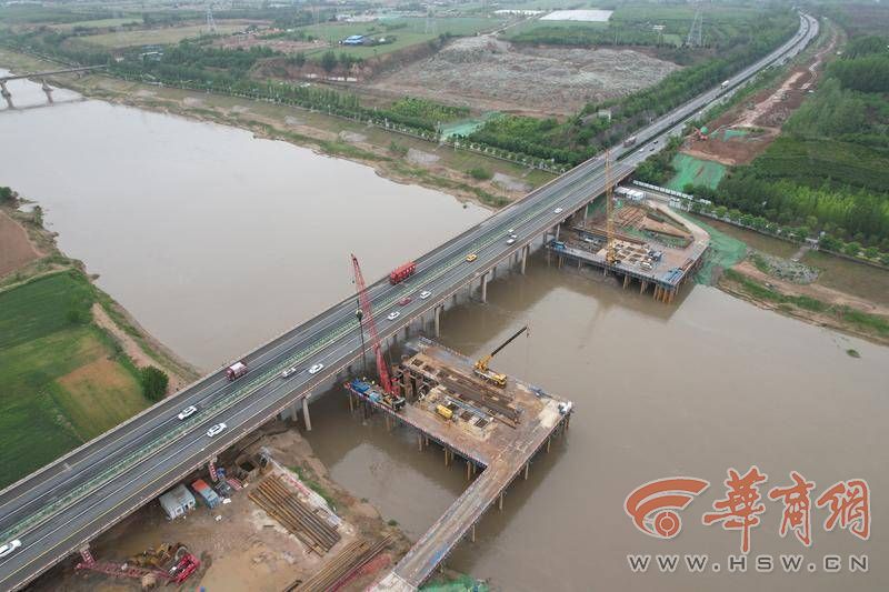 5月29日,在京昆改擴(kuò)建項(xiàng)目六標(biāo)段港務(wù)區(qū)大橋施工現(xiàn)場(chǎng),可以看到此處正準(zhǔn)備架設(shè)橋梁。一邊是繼續(xù)通行的京昆高速,一邊是繁忙的建設(shè)工地,“這里是路基改橋施工,橋?qū)牡胤降缆飞戏娇邕^去。”京昆改擴(kuò)建項(xiàng)目六標(biāo)段常務(wù)副總工余偉介紹,目前高速公路在地方道路紡渭路下面,完成后兩條路將倒換位置。