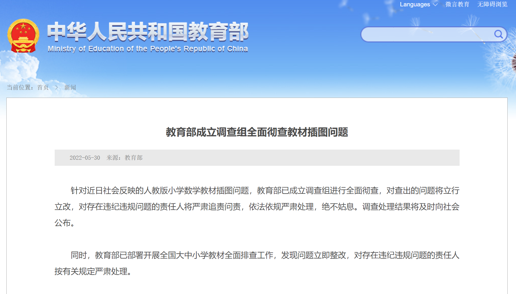 同時,教育部已部署開展全國大中小學教材全面排查工作,發(fā)現問題立即整改,對存在違紀違規(guī)問題的責任人按有關規(guī)定嚴肅處理。