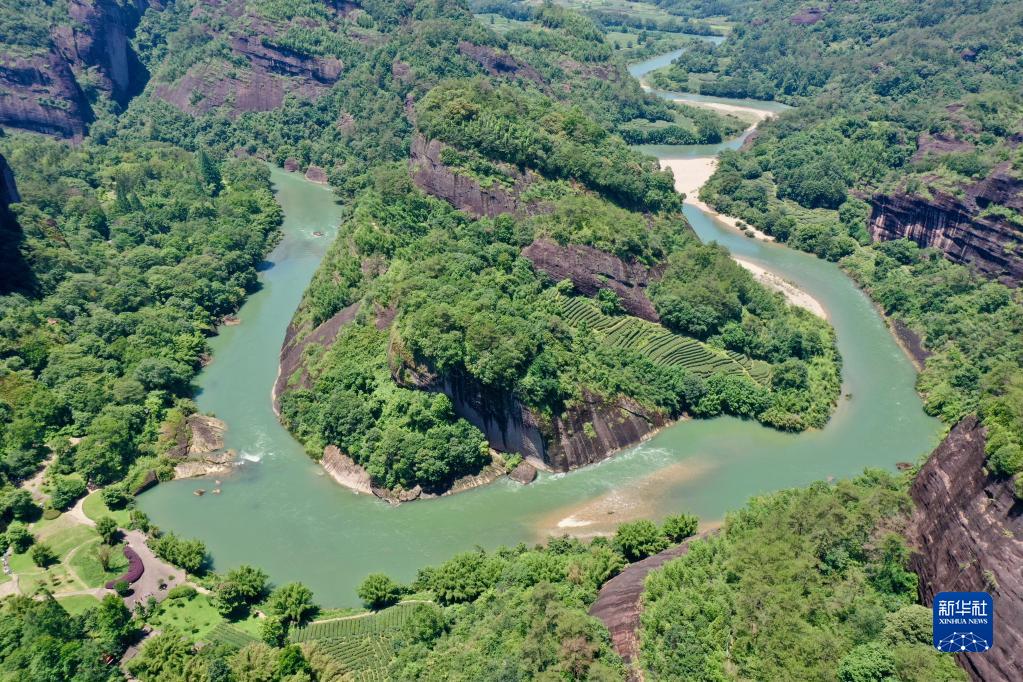 武夷山九曲溪兩岸的丹霞景觀(6月7日攝,無人機(jī)照片)。新華社記者 姜克紅 攝