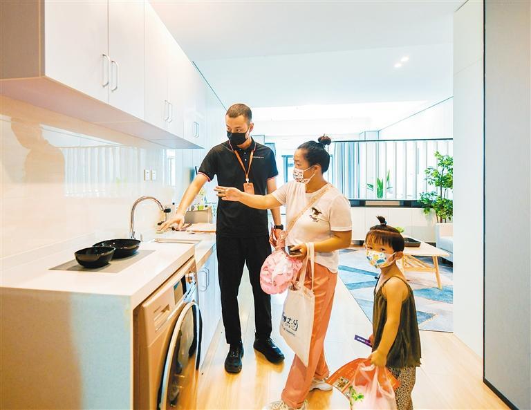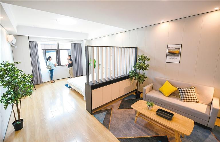 簡(jiǎn)單介紹后,工作人員帶著劉女士參觀了位于6樓的樣板間。“真寬敞夠亮堂!”房門打開的一瞬間,劉女士忍不住感嘆道。這套房源有70多平方米,裝修簡(jiǎn)約時(shí)尚、充滿年輕氣息,洗衣機(jī)、冰箱、空調(diào)等設(shè)施一應(yīng)俱全,家具陳列干凈整潔。“真沒想到條件這么好,房間內(nèi)的裝修和家具都是我喜歡的樣子。尤其是房間里有獨(dú)立的衛(wèi)浴,住起來會(huì)很方便。”劉女士說,自己對(duì)房源很滿意。參觀結(jié)束后,劉女士立即向工作人員詳細(xì)詢問租住流程。
