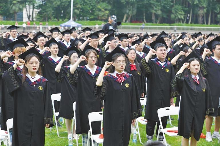 西安交通大學(xué)畢業(yè)典禮上,同學(xué)們莊嚴(yán)宣誓,表達(dá)了把青春奮斗融入黨和人民事業(yè)的堅定決心。西安交通大學(xué)供圖