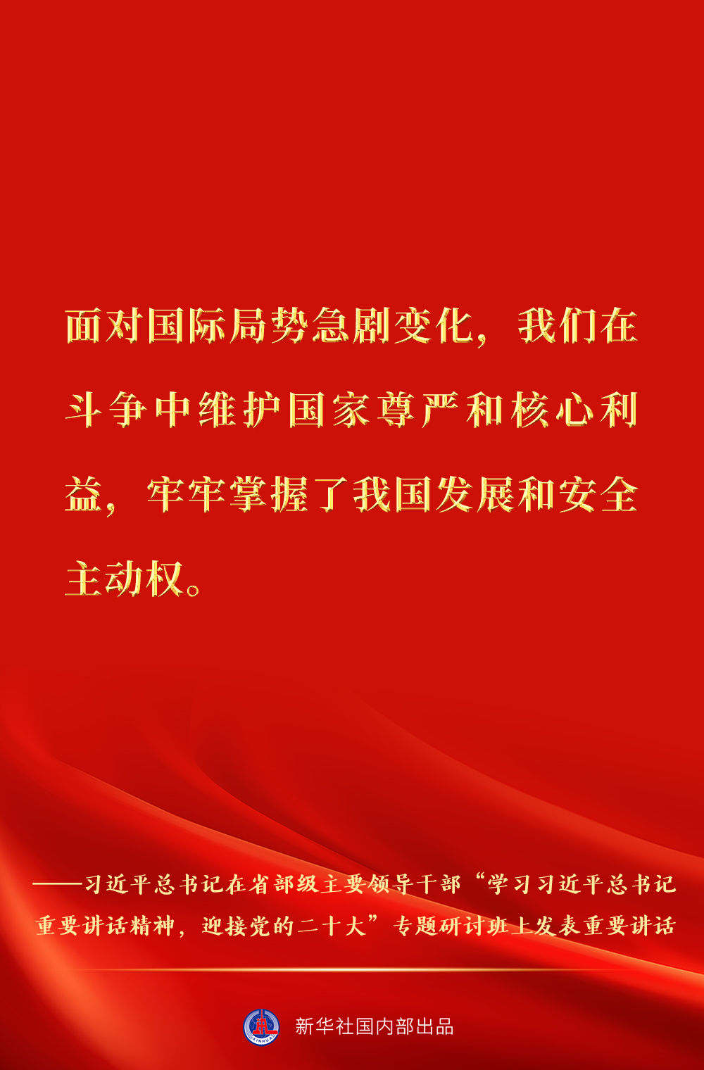 省部級主要領(lǐng)導(dǎo)干部“學(xué)習(xí)習(xí)近平總書記重要講話精神,迎接黨的二十大”專題研討班26日至27日在京舉行。中共中央總書記、國家主席、中央軍委主席習(xí)近平發(fā)表重要講話。一起來看金句速覽。