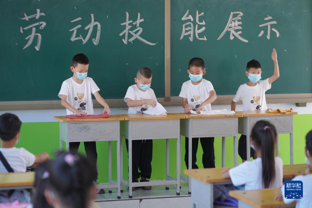 9月1日,河北省邢臺(tái)市內(nèi)丘縣西陽(yáng)小學(xué)學(xué)生在開學(xué)第一課上比拼勞動(dòng)技能。新華社發(fā)(劉繼東 攝)