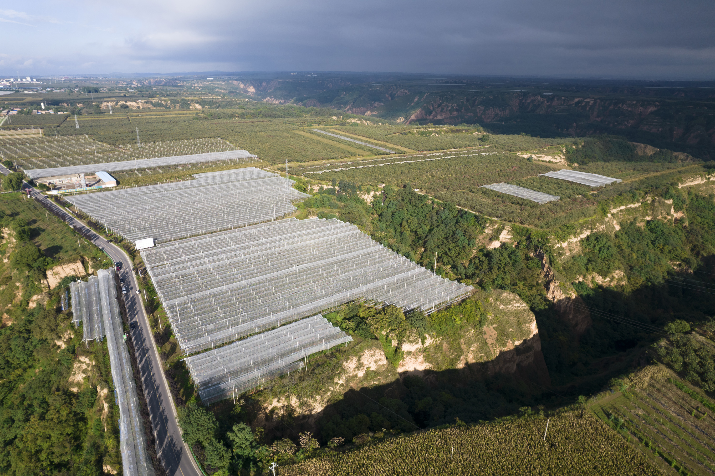 延安市洛川縣舊縣鎮(zhèn)發(fā)展的蘋果產(chǎn)業(yè)(9月20日攝,無(wú)人機(jī)照片)。新華社記者 邵瑞 攝
