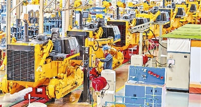 近年來(lái),山東山推工程機(jī)械股份有限公司積極響應(yīng)“一帶一路”倡議,主要產(chǎn)品在“一帶一路”沿線均有銷售。圖為在山推總裝車間,工人正在作業(yè)。 |
