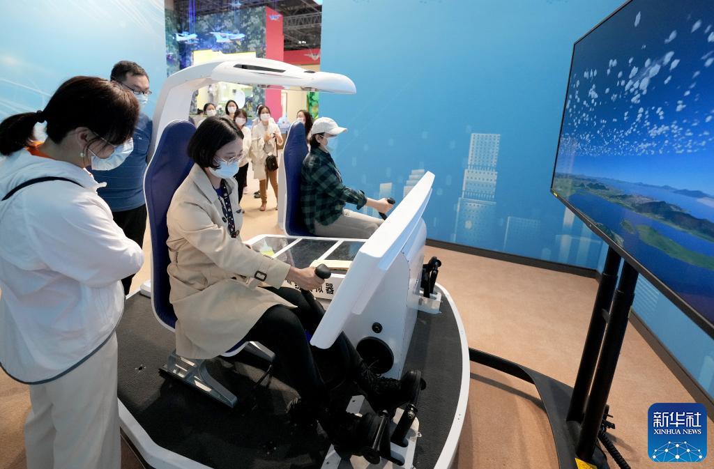 10月7日,觀眾在“奮進(jìn)新時(shí)代”主題成就展上體驗(yàn)操縱直升機(jī)訓(xùn)練模擬器。當(dāng)日是國慶長(zhǎng)假的最后一天,大批觀眾來到北京展覽館參觀“奮進(jìn)新時(shí)代”主題成就展。新華社記者王毓國 攝