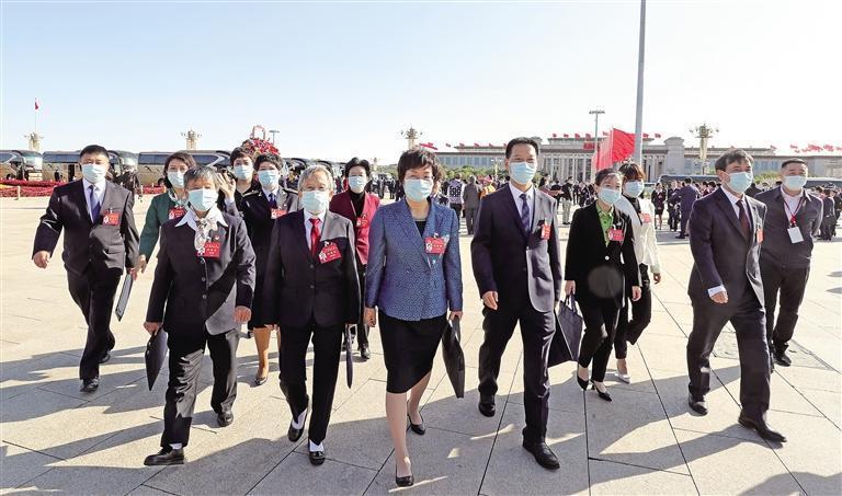 10月16日上午,中國(guó)共產(chǎn)黨第二十次全國(guó)代表大會(huì)在北京隆重開(kāi)幕。出席黨的二十大的陜西省代表滿懷豪情,步入人民大會(huì)堂,參加開(kāi)幕會(huì)。 記者 母家亮攝