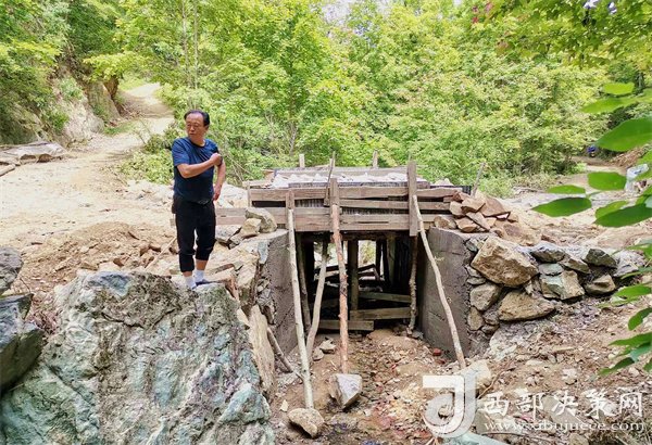 寧強(qiáng)縣陽(yáng)平關(guān)鎮(zhèn)伍家壩村第一書記唐賢斌冒著酷暑在查看修建便民橋。