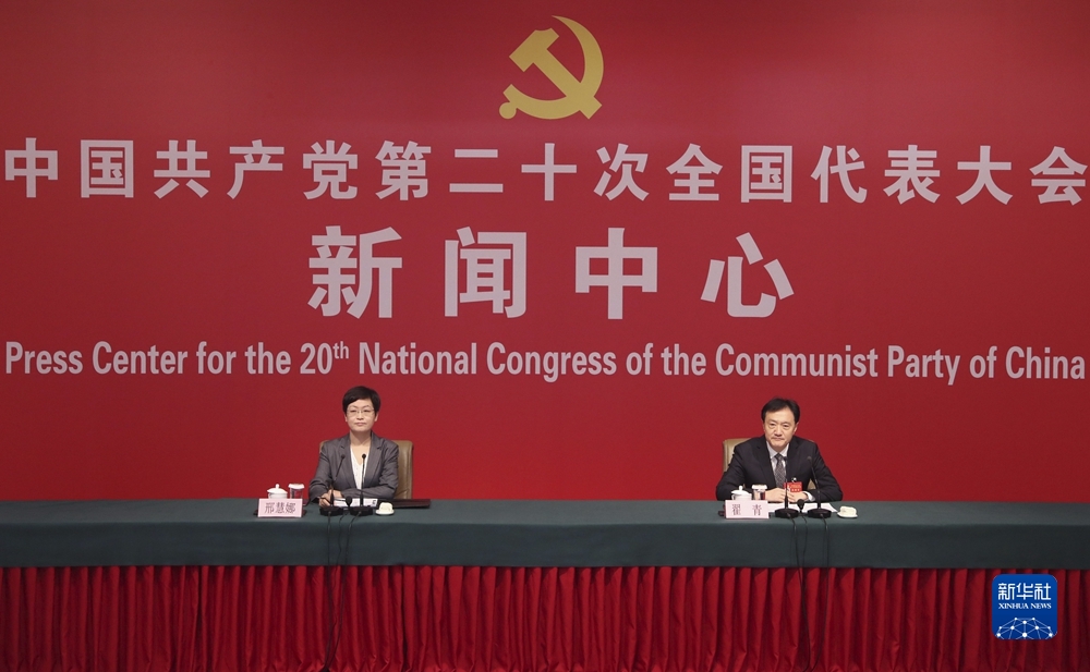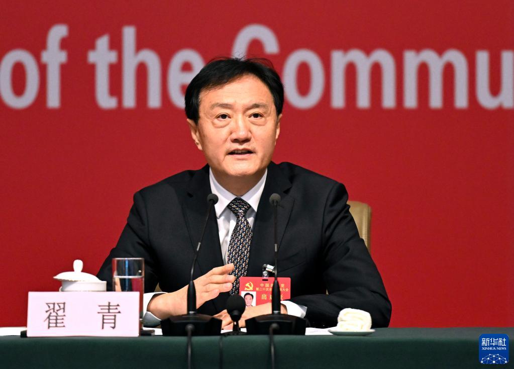 10月21日,中國共產(chǎn)黨第二十次全國代表大會新聞中心舉行記者招待會。生態(tài)環(huán)境部黨組成員、副部長翟青圍繞“建設(shè)人與自然和諧共生的美麗中國”主題與記者交流。新華社記者 賈浩成 攝