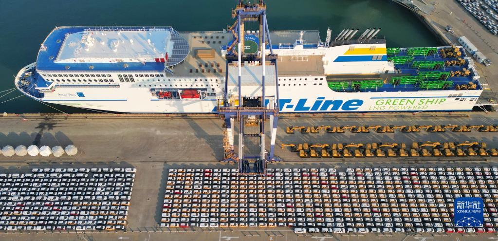 12月7日,出口商品車(chē)在山東港口煙臺(tái)港集結(jié)裝船(無(wú)人機(jī)照片)。新華社發(fā)(唐克 攝)