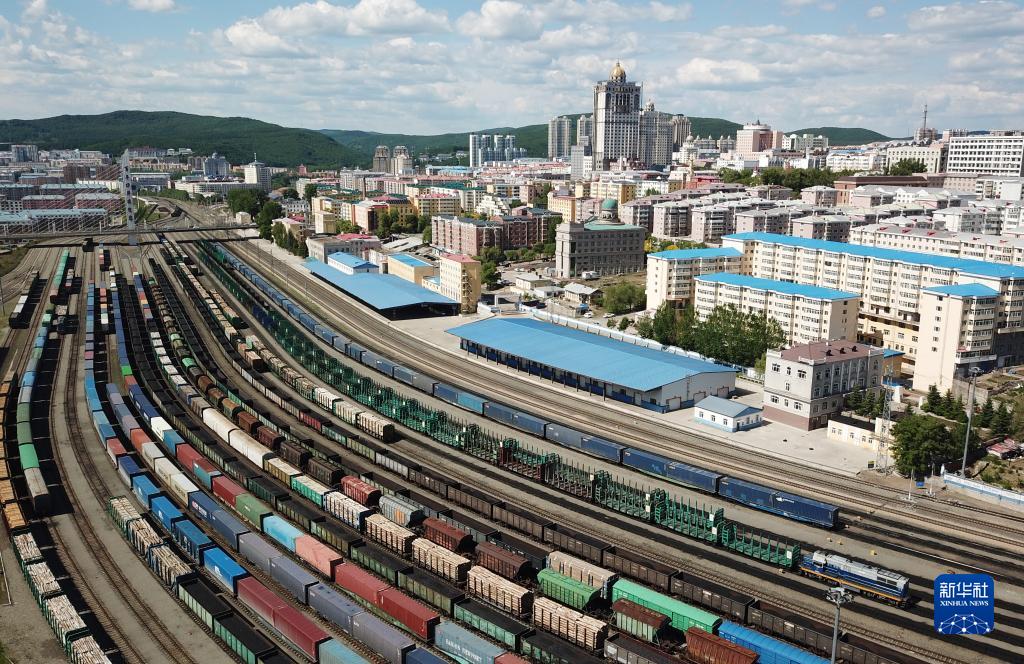 2022年6月8日拍攝的中國(黑龍江)自由貿(mào)易試驗(yàn)區(qū)綏芬河片區(qū)局部(無人機(jī)照片)。新華社記者 王建威 攝