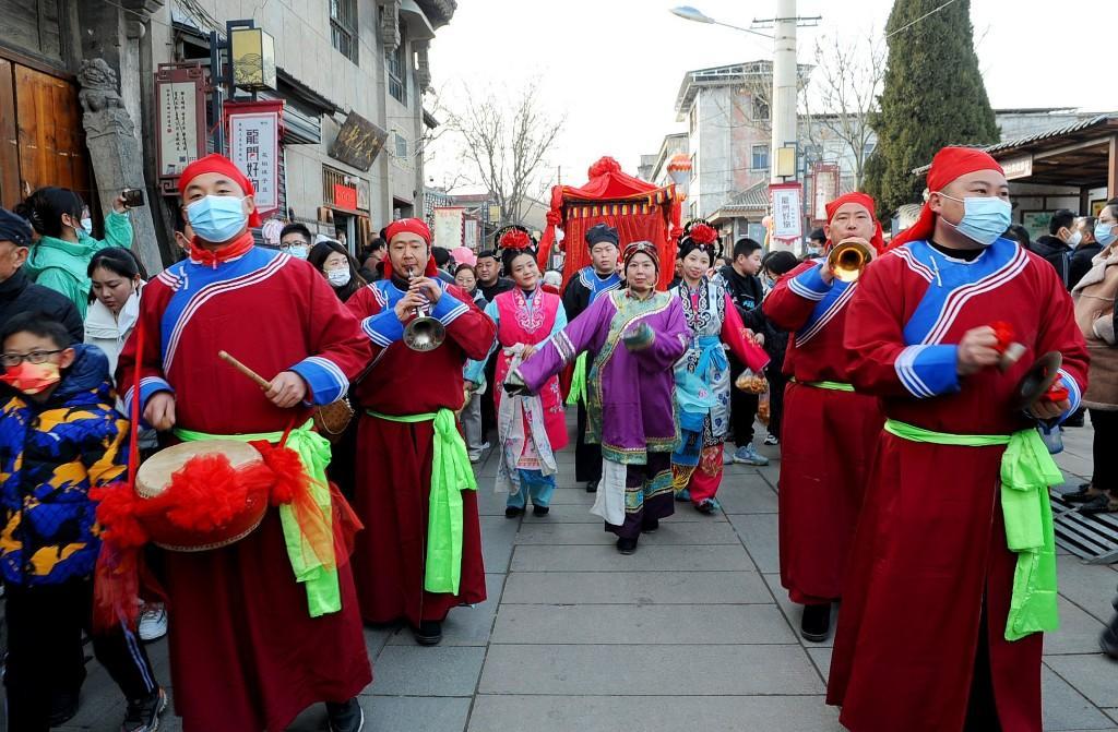 1月23日大年初二12:06,首批乘坐“韓城過大年”定制列車的400多名游客抵達(dá)韓城,走進(jìn)史圣故里,感受古城悠久的文化底蘊(yùn)和不一樣的韓城年味。游客們沿著新開辟的“古城環(huán)線游”線路,依次游覽古城三廟、民俗博物館,欣賞非遺展覽,在古城美食街品嘗當(dāng)?shù)孛朗场P凶咴诠懦?,社火、秧歌、踩高蹺…… 各色非遺表演精彩紛呈,游客們紛紛拿出手機(jī)留下精彩的瞬間,抱起孩子共享這難得的歡樂時(shí)光,體驗(yàn)這里濃濃的年味。