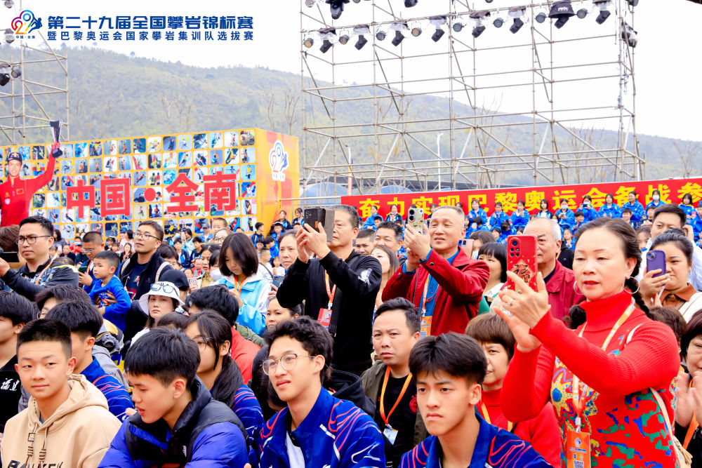 “我很難用語言表達(dá)出這種感受,就是覺得非常欣慰能給家鄉(xiāng)父老帶來這樣精彩的比賽,讓他們現(xiàn)場感受攀巖的魅力。”鐘齊鑫說,“希望在未來,有更多家鄉(xiāng)的人能去體驗攀巖,在這里打下全民參與攀巖的基礎(chǔ)。”