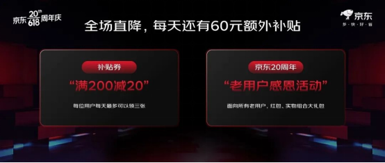 此外,今年京東618還推出了“京東20年 一路相伴”老用戶(hù)感恩活動(dòng),為所有京東老用戶(hù)帶來(lái)福利。針對(duì)京東PLUS會(huì)員用戶(hù),京東618也推出了“618京東PLUS會(huì)員超級(jí)卡”等專(zhuān)屬福利。
