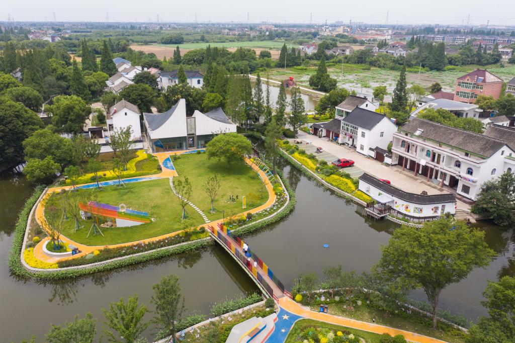 6月15日,空中俯瞰嘉興市秀洲區(qū)新塍鎮(zhèn)洛東村(無人機(jī)照片)。新華社記者 徐昱 攝