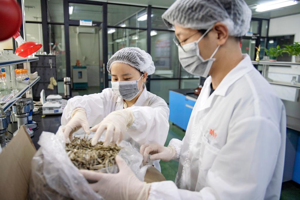 在湖南省岳陽市平江高新技術(shù)產(chǎn)業(yè)園區(qū),勁仔食品平江生產(chǎn)基地實驗室工作人員開箱,準(zhǔn)備對肯尼亞野生鳀魚產(chǎn)品進行水分檢測(6月28日攝)。6月29日,中國首次進口的肯尼亞野生鳀魚產(chǎn)品在湖南長沙開幕的第三屆中非經(jīng)貿(mào)博覽會上亮相。新華社記者 孫瑞博 攝