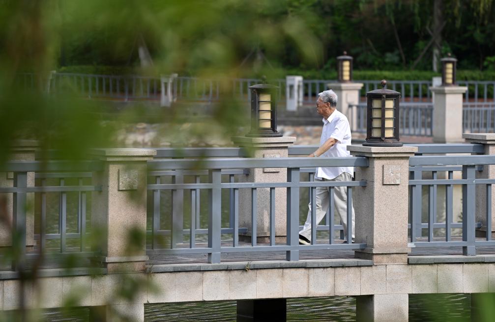 一位老人在天津一養(yǎng)老社區(qū)中散步。(新華社記者李然 攝)