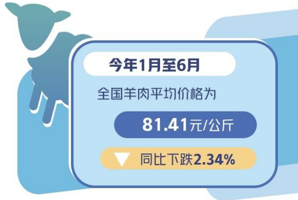 活羊價(jià)格下跌,帶動(dòng)羊肉價(jià)格回落。農(nóng)業(yè)農(nóng)村部全國(guó)500個(gè)縣集貿(mào)市場(chǎng)畜禽產(chǎn)品和飼料價(jià)格定點(diǎn)監(jiān)測(cè)數(shù)據(jù)顯示,今年1月份以來(lái),全國(guó)羊肉價(jià)格持續(xù)下行。1月至6月,全國(guó)羊肉平均價(jià)格為81.41元/公斤,同比下跌2.34%。