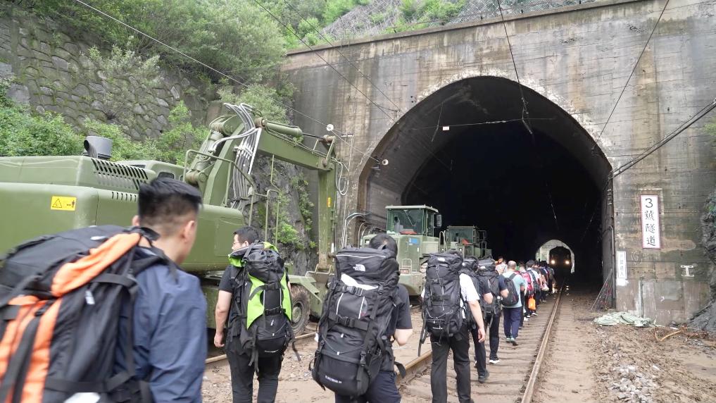 隨后,突擊隊(duì)成員徒步攜帶生活物資向安家莊站、落坡嶺站行進(jìn)。身負(fù)30至40斤背包,沿著受損的鐵路線,徒步11余公里,穿越7個(gè)隧道,為安家莊站、落坡嶺站滯留旅客及時(shí)送去物資。